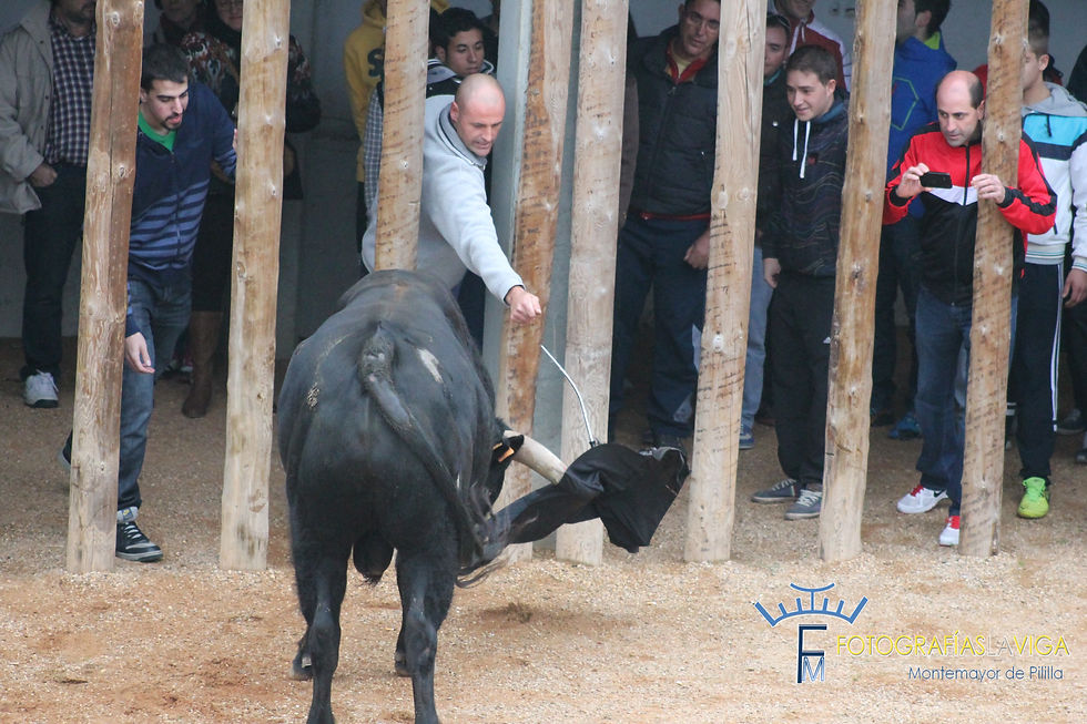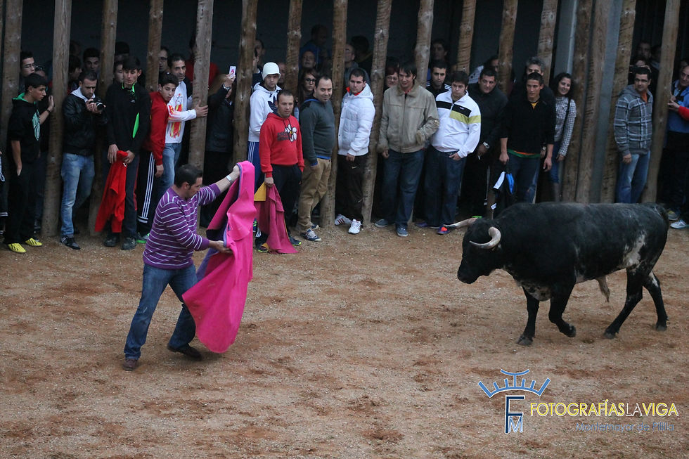 Como ultimo evento taurino nos trasladamos a Traspinedo. Se preveían 3 toros, uno de ellos de la ganadería de Aldeanueva. El encierro trascurre normal y solo con un revolcón y un chico tras saltar un toro se rompe la rodilla. Estaba todo lleno y había bastantes cortadores.